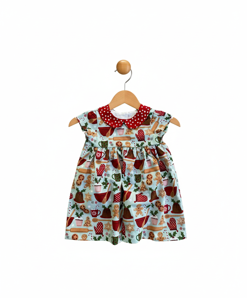Gingerbread Cookies Dress with Red Polka Dot Peter Pan Collar (NEW) 18/24 Month - Ready to ship