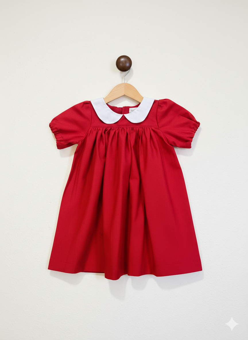 Capture timeless charm with this beautifully handmade red cotton dress. Perfect for holiday portraits, family gatherings, special occasions, or just adding a touch of classic sweetness to your child's everyday wardrobe.
