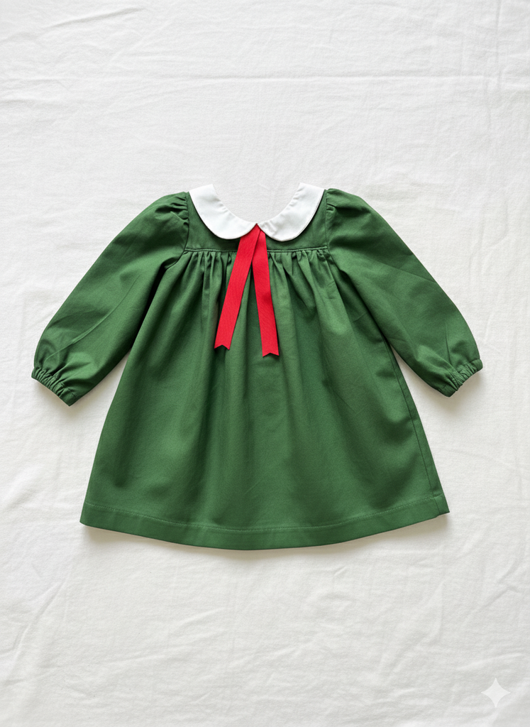 🎄 Classic Forest Green Dress with Peter Pan Collar
